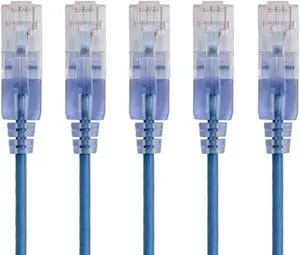 Monoprice Cat6A Ethernet Network Patch Cable - 30 Feet - Blue | 5-Pack, 10G - SlimRun Series (133215)
