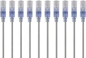 Monoprice SlimRun Cat6A Ethernet Patch Cable - Network Internet Cord - RJ45, Stranded, 550Mhz, UTP, Pure Bare Copper Wire, 10G, 30AWG , 14ft, Gray, 10-Pack