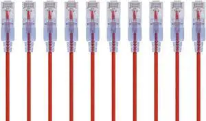 Monoprice 10-Pack SlimRun Cat6A Ethernet Network Patch Cable 10G 6-inch Red
