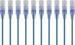 Monoprice Cat6A Ethernet Network Patch Cable - 25 Feet - Blue | 10-Pack, 10G - SlimRun Series (133236)