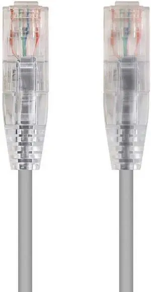 Monoprice SlimRun Cat6 Ethernet Patch Cable - Network Internet Cord - RJ45, Stranded, 550Mhz, UTP, CMR, Riser Rated, Pure Bare Copper Wire, 28AWG, 3ft, Gray