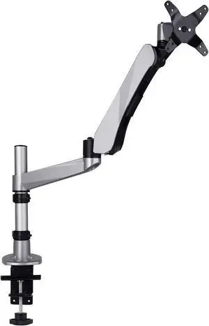Mount-It! Single Monitor Desk Mount with Height Adjustable Mechanical Spring Arm, Full Motion Silver Bracket Fits 24 27 29 30 32 Inch Screens VESA 75, 100 mm, Easy Install C-Clamp and Grommet Base