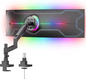 Mount-It! Ultrawide Monitor Desk Mount with Pole, Fits 1749 Screens, Heavy Duty Height-Adjustable Gas Spring Arm, 44 lbs Capacity, Full Motion, VESA 75/100, Clamp or Grommet