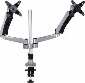 Mount-It! Dual Monitor Desk Mount Arm, Height Adjustable Gas Spring Arm, for 17-27 Inch LCD, LED Computer Monitors (13, 15, 17, 19, 20, 22, 23, 24, 26, 27), VESA 75, 100, Silver