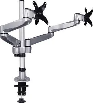 Mount-It! Dual Monitor Desk Mount Arm, Full Motion Articulating Arm, for 17-27 Inch LCD, LED Computer Monitors (13, 15, 17, 19, 20, 22, 23, 24, 26, 27), VESA 75, 100, Silver
