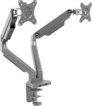 Mount-It! Dual Monitor Desk Mount with USB 3.0 Ports, Full Motion Dual Monitor Stand for 2 Screens up to 32 Inches, VESA 75x75 & 100x100, Clamp or Grommet Installation