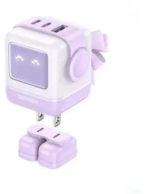 GaN 65W PPS USB C Charger Robot Design Fast Charging Adapter Potable Mini Wall Charger Power Adapter for iPad MacBook Purple