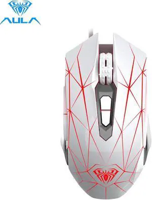 AULA Wired Gaming Mouse 2400DPI Adjustable Optical 6 Buttons Marco Programmable Ergonomic Mouse with 4-Color Breathing Light for PC Laptop (White)