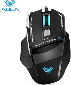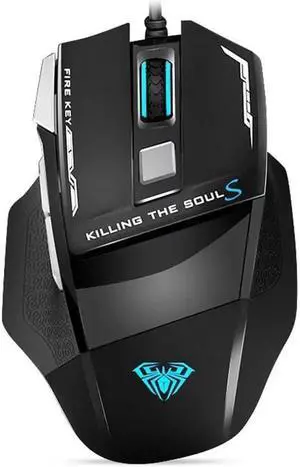 AULA S12 Gaming Mouse, 2400 dpi, 7 Keys Custom Programable, Fire Button, Breathing Backlit, Ergonomic USB Optical Game Mice, Gamer Desktop Laptop PC Wired Gaming Mouse for Windows XP/7/8/10, Black