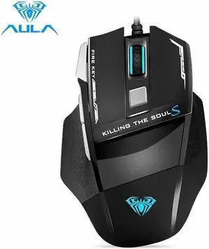 AULA S20 Gaming Mouse Marco Programmable, 2400DPI, Cool Lighting USB Optical Gaming Mouse for PC Laptop (Black)