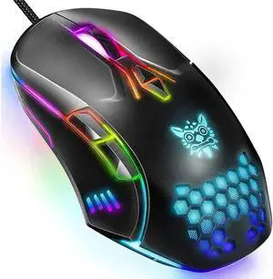 AULA S20 Gaming Mouse, Wired USB Computer Mouse with RGB LED Backlit, DPI Adjustable, PC Gaming Mice with 6 Programmable Macro Buttons for Desktop, Laptop, PC, Mac - Black