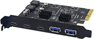 PCIE USB Expansion Card Expand PC Connectivities Fast Data Transfer C/Port 2USB Type-A+3Type C 5Port Hubs