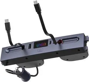 USB Charging Hub for Car Supports Laptop Central Control Splitter Center Console Docking Station with Retractable Cable