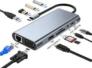 USB C Hub 4K 11 in 1 Multiport Docking Station, PD Fast Charging, RJ45 Ethernet, VGA, Memory Card Reader, 3.5mm Audio for Laptops