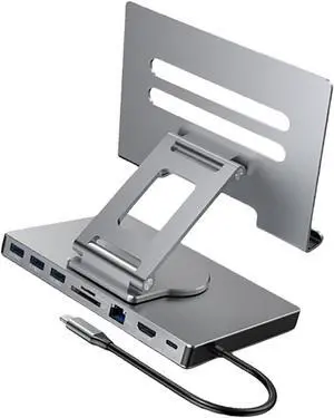 Rotating Type C Dock Stand for Tablets PD100WCharging Gigabit Networking Port 3.5mm Slip Proof Silicone PadCooling Design Aluminum Alloy Portable USB Adapter