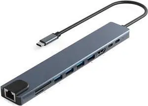 8 in 1 USB C HUB 3.0 Type C Splitter 4K Docking Station Laptop Adapter PD SD TF RJ45 HDMI Compatible with Laptop Parts Notebook Models Air M1 Pro for Part Number 8K1927225B