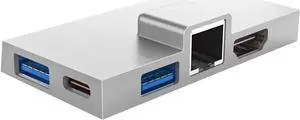 B C Hub 5 in 2 Multiport Adapter, B ocking Station for Pro 7, Aluminum y B C Hub with 4K HD Multimedia Interface, Dual B30. Ports, Memory Card and Storage, Compact (Silver)