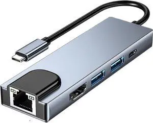 6 In 1 Docking Station With Ethernet USB3.0 Data Transfer Port 4K Adapter Adapter Card Reader Converter For Laptop Aluminum Dock Hub