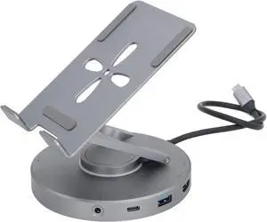 Rotating Type C Docking Station with Foldable Stand PD100W Charging Gigabit Ethernet 3.5mm for Laptops Tablets Type C Rotating Stand Docking Station
