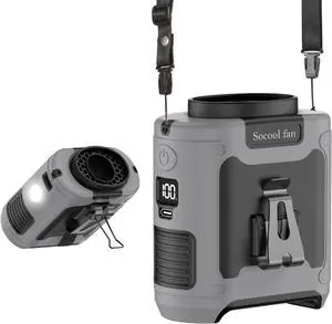 Socool 14500mAh Portable Waist Fan Clip on Belt 360 Rotation Wearable Rechargeable Personal Shirt Fan, 67H Cooling 5-Speed Battery Operated with Light, Neck Fan Hands-Free for Outdoor (Gray, 10000mAh)