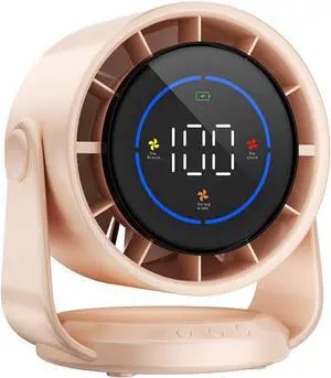 Desk Fan Ultra Quiet Wall-Mounted Desk Fan Digital Display Rechargeable USB Fan Office Travel Camping Pink
