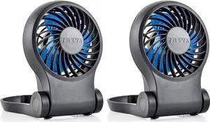 Treva 3.5 02COOL Mini USB Portable Desk Fan (2 Pack), Black/Blue, 2 Units