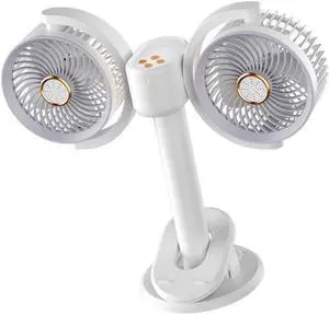 Rechargeable Clip On Fan USB Powered Foldable Cooling with LED Night Light 3 Speeds Quiet Operations for Office Camping