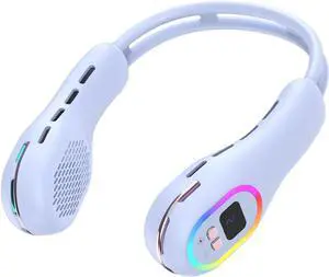 Portable Neck, Personal Cooling, Quiet, Compact, LED Display, Lightweight, 3 Speeds, Portable for, Office, Work, Purple