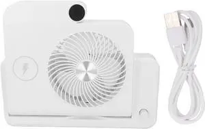 Bnineteenteam USB Desk Fan, 100 Gears Adjustable Folding Small Portable Fan with Wireless Charging Station, for Mobile Phones, Ideal for Home, Office (White)