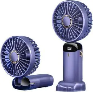 Mini Handheld Fan, Handheld Mini Fan Foldable Portable 5 Speed USB Rechargeable Fan Display Screen,for Travel/Outdoor/Camping(PURPLE fan)