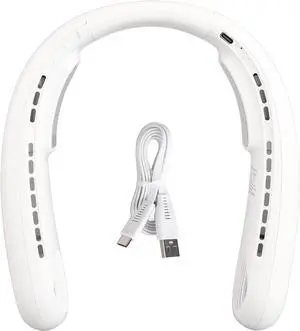 Hanging Neck Fans Portable Semiconductor Dual Cooling 3 Wind Speed Mini USB Charging Fan Applicable for Home Office Travel (White)