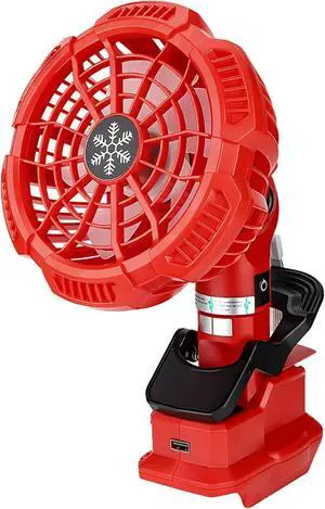 Fc109 Portable Fan Designed For, 14V-18V Lithium Batteries, Usb Charging Feature, Adjustable Stand, 16.6 Cm Fan In Red