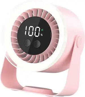 Desktop Cooling Fan 100Levels Adjustable Speed Auto Rotation Wide Angles Quiet Operate Builts In Blue Ambients Light Rechargeable Battery Powered Cooling Fan
