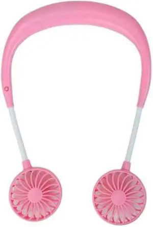 Handheld Fan USB Portable Fan Handsfree Neck Fan Hanging Sports Fan USB Rechargeable 3 Speed (Fan)(Color: Upgrade White) (Pink)