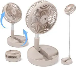 Foldable Standing Fan, Portable Fan Adjustable Height Table Desk Fan, 3-In-1 Foldaway/Standing/Desk Fan 7200mAh Rechargeable, USB Pedestal Fan for Personal Home Office Bedroom Camping Travel (Beige)