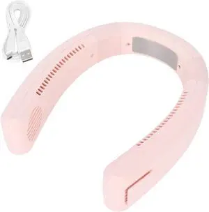 Neck Fan Portable USB Charging, 4000 to 5500rpm, 80 Holes High Poly Wind - Rechargeable Battery, Powerful Cooling, Personal Fan for Outdoor and Household Use (Pink)