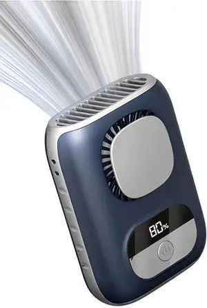 USB Neck Fan with Digital Display, 2000 Mah Rechargeable Battery, Clip-On and Hanging Design, Adjustable 3-Speed Fan for Outdoor Use