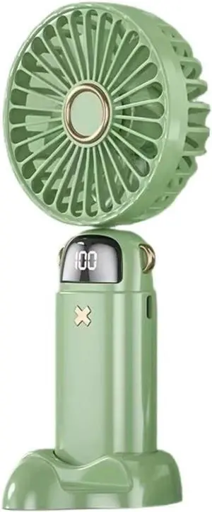 Portable Fan USB Handheld Mini Fan Foldable Portable Neck Hanging Fans 5 Speed USB Rechargeable Fan with Phone Stand and Display Screen(Green)
