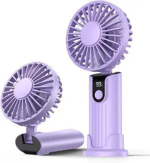 Mini Handheld Fan, Portable Handheld Fan,5000mAh 3 in 1 Multifunction Personal Travel Neck Fan with Digital Display,90° Foldable Desk Fan,for Travel/Outdoor/Camping(Purple 5000mah)