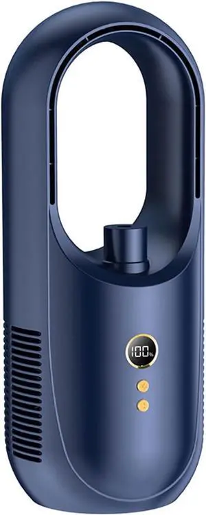 Desktop Cooling Fan 100Levels Adjustable Speed Auto Rotation Wide Angles Quiet Operate Builts In Blue Ambients Light Rechargeable Battery Powered Cooling Fan
