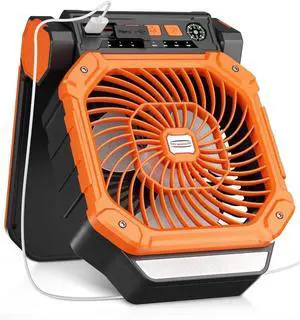 Battery Powered Fan, Rechargeable Fan Portable, 180° Pivot Battery Operated Fan with Light, Timer, 360° Rotation Hanging Hook, 100 Speeds Camping Fans for Tents, Fishing, RV, Jobsite, Picnic