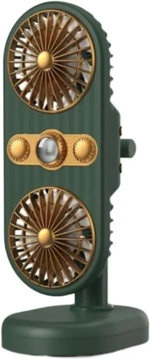 USB Desk Fan Double Fan Desk USB Charging Portable Fan Vertical Clip Type Personal Fan 360° Adjustment Home Office Car(Green)