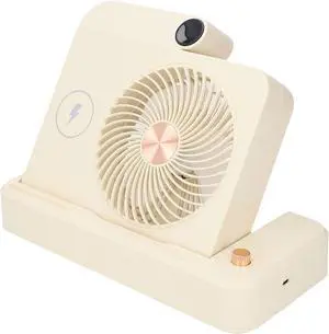 Desk Fan, 100 Speed Adjustable Folding Quiet Portable Fan with Wireless Charging Station for Mobile Phones Home Office Outdoor (Beige)