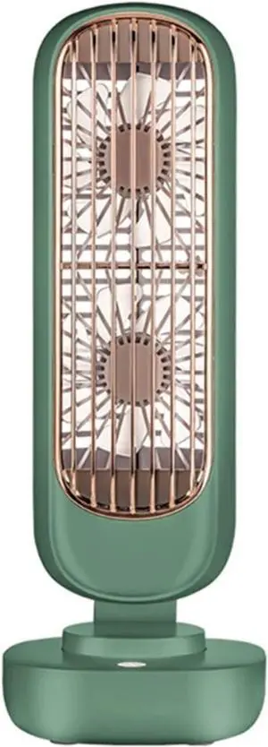 Double Leaf Cooling Fan 3 Speeds Adjustable Tower Table Quiet Air Cooler Portable Desk USB Rechargeable,Standing Fan(Green)