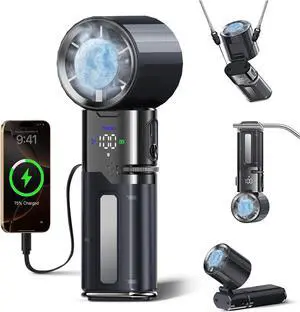 yAyusi Portable Rechargeable Handheld Turbo Fan, 9000mAh Multifunctional Battery Fan with Ice Cooling Charging Function, Built-in Type-C Charging Cable, 100-Speed Wind, Suitable for Travel/Office