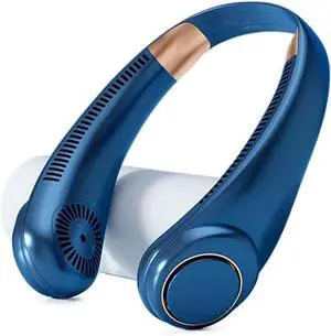 Mini Fan Vertical 3 Speed Adjustable Neck Fan USB Charging Bladeless Fan USB Charging Leafless Hanging Fan 360°Ambient Air Outlet for Kids (Color: White) (Blue)