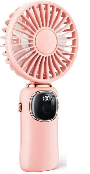 Mini Handheld Fan, Portable Handheld Fan 5 Speed with LED Display Handheld/Neck/Desk 3 in 1,for Travel/Outdoor/Camping(Pink)
