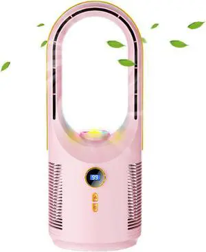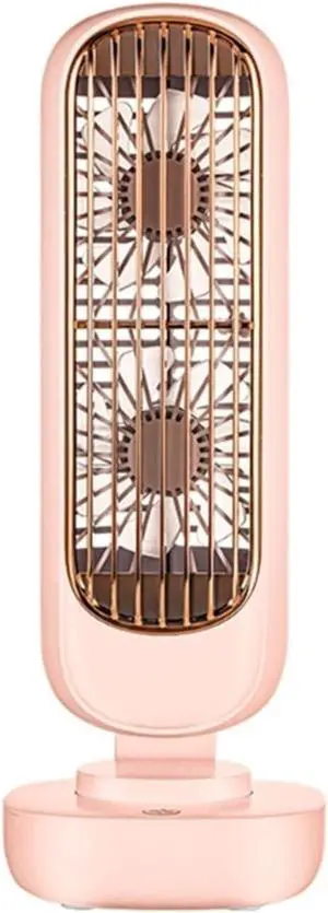 Blade-Less Fan Double Leaf Cooling Fan 3 Speeds Adjustable Tower Table Fan Quiet Air Cooler Fan Portable Desk Fan USB Rechargeable(Pink)
