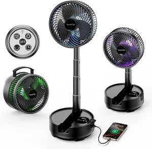 Desk Fan 10000mAh USB Rechargeable Battery Portable with Remote Control LED Light with Tripod 3 Speeds Camping
