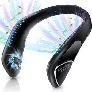 Kakashi Portable Neck Fan, 6000mAh Rechargeable Bladeless Operated Wearable Personal Fan with 3 Speeds, 360°Cooling Leafless Adjustable Neck Fan Blow Cold Air for Travel Outdoor